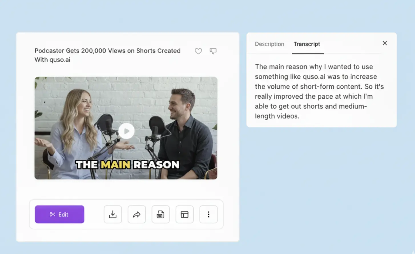 Paste a YouTube URL, generate a transcript with AI, then copy, edit, or download the text in just a few steps.